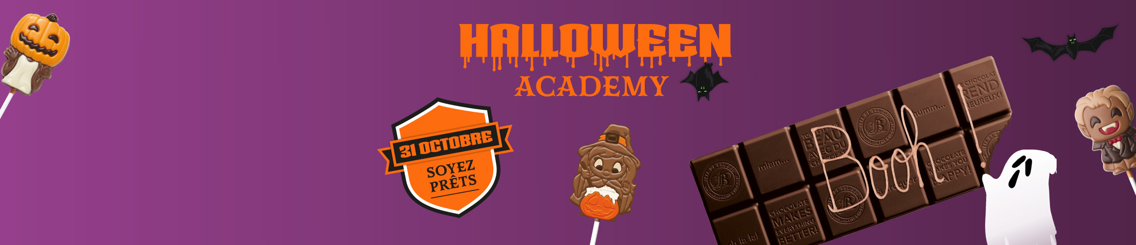 Chaque année, le 31 octobre, les enfants revêtent leurs costumes les plus terrorisants pour aller sonner aux portes et réclamer « une farce ou une friandise ». Le but ? Choisir le costume le plus original et surtout éloigner les esprits malveillants ! Les maîtres chocolatiers Jeff de Bruges raffolent de cette fête automnale, car elle est l’occasion pour eux de préparer des chocolats d’Halloween colorés et qui tous prennent la forme de figurines effrayantes, mais assurément gourmandes. Incontestablement, le chocolat d’Halloween est l’élément essentiel pour profiter d’une journée monstrueusement savoureuse et pleine de surprises.