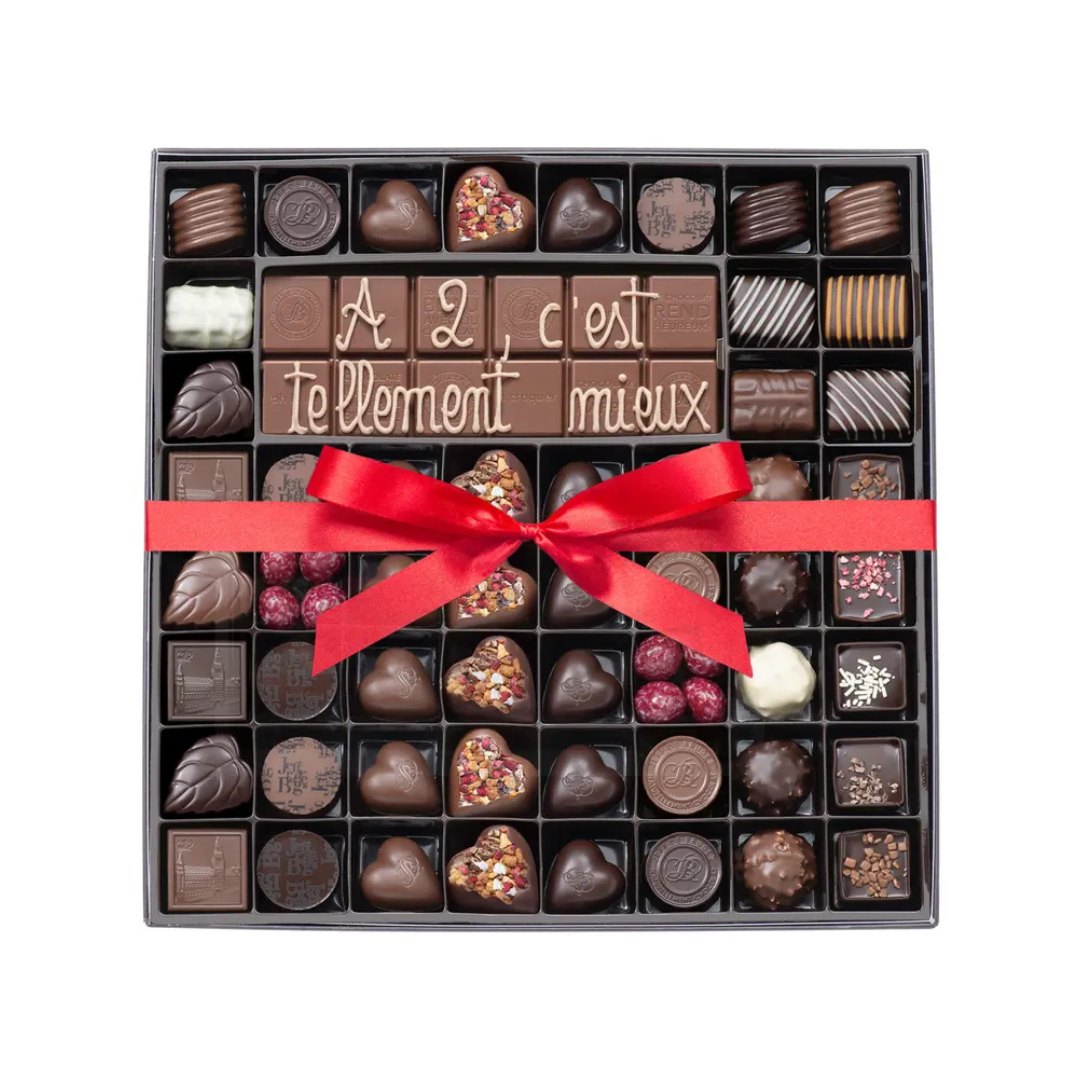 Une belle façon de déclarer son amour. Dans ce coffret ultra gourmand, un assortiment de recettes en chocolat au lait ou en chocolat noir aux accords parfaits et surprenants dont nos 4 nouveautés exclusives.