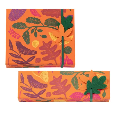 Craquez pour la diversité de nos délicieux chocolats d’automne : pralinés tendres ou croustillants, pâtes d’amande d’automne moelleuses et gourmandes ou amandes enrobées de chocolat…. Le tout, délicatement présenté dans un coffret au décor d’automne coloré avec un toucher sophistiqué, sublimé par de jolies feuilles d’automne.
