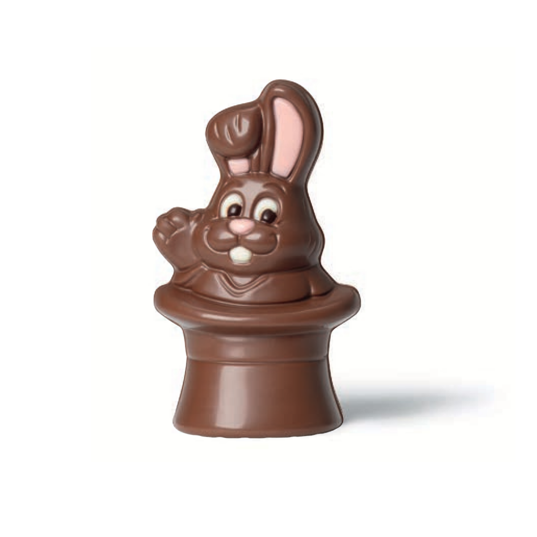 Ce grand sujet en chocolat au lait, accompagné de ses petits chocolats fourrés, fera un beau cadeau à déguster seul ou en famille.