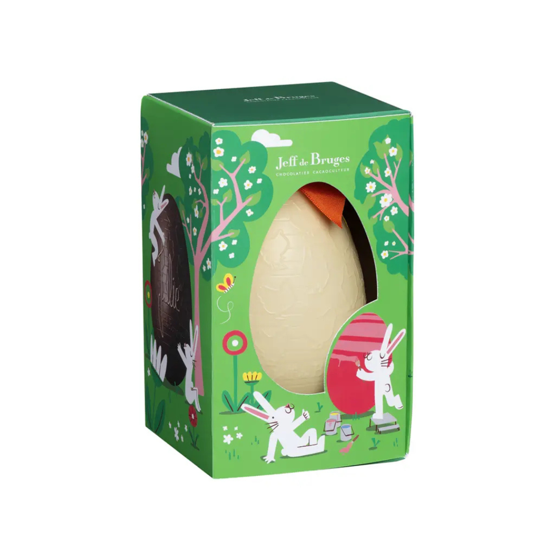 Sophie, Raphaël, Louve, Louis… Nous personnalisons vos oeufs de Pâques en écrivant les prénoms de vos poussins ! Cet oeuf géant en chocolat au lait 36% cacao d’Équateur garni de délicieuses gourmandises rendra à coup sûr la chasse aux oeufs mémorable ! A chacun son oeuf, grâce à la personnalisation e cadeau devient unique.